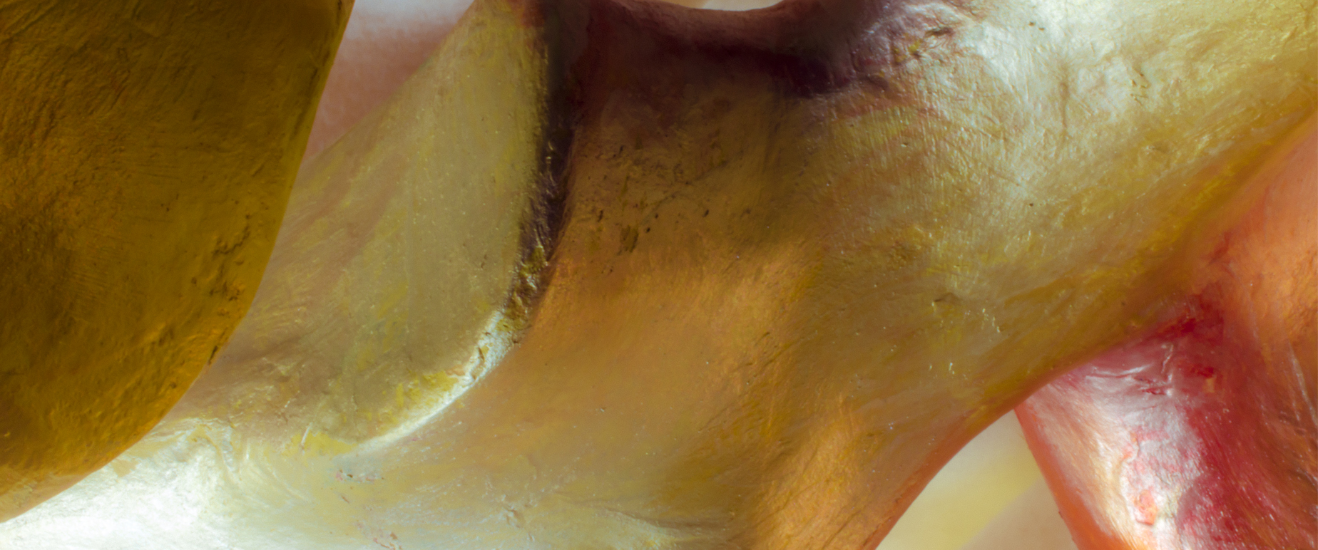 I would like to cross her body with lines from plateau to plateau, because her body is a fantastic city of organs, bones and muscles. Hence I fabricated thick ribs, that are supposed to give adhesion to her interior. I imagined the thick ribs to be absorbed all by them selves, when they are being plastered with fresh clots of moist paste.